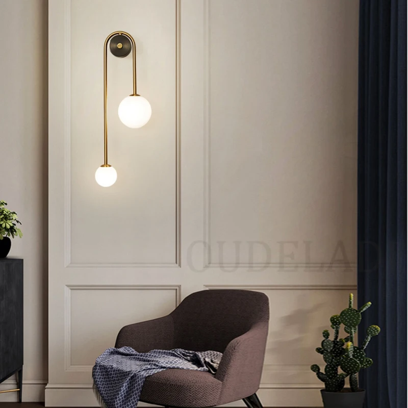 Nordic bedside Glass ball wall light bedroom living room staircase aisle modern brass decor TV background wall lamps